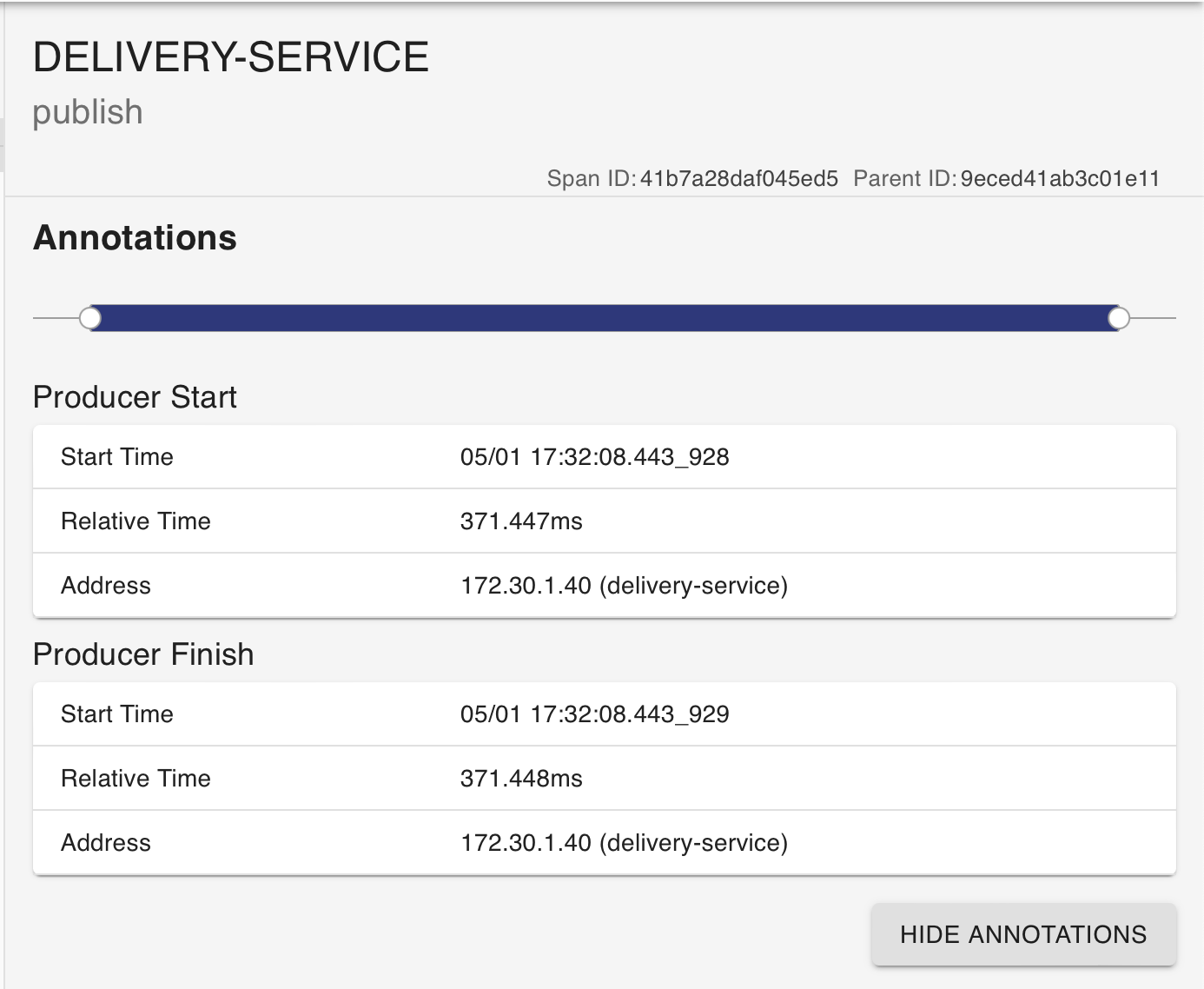 κ·ΈλΌ μμ κ°μ΄ message publish μ λν Span μ΄ μΆκ°λ κ²μ λ³Ό μ μλ€.