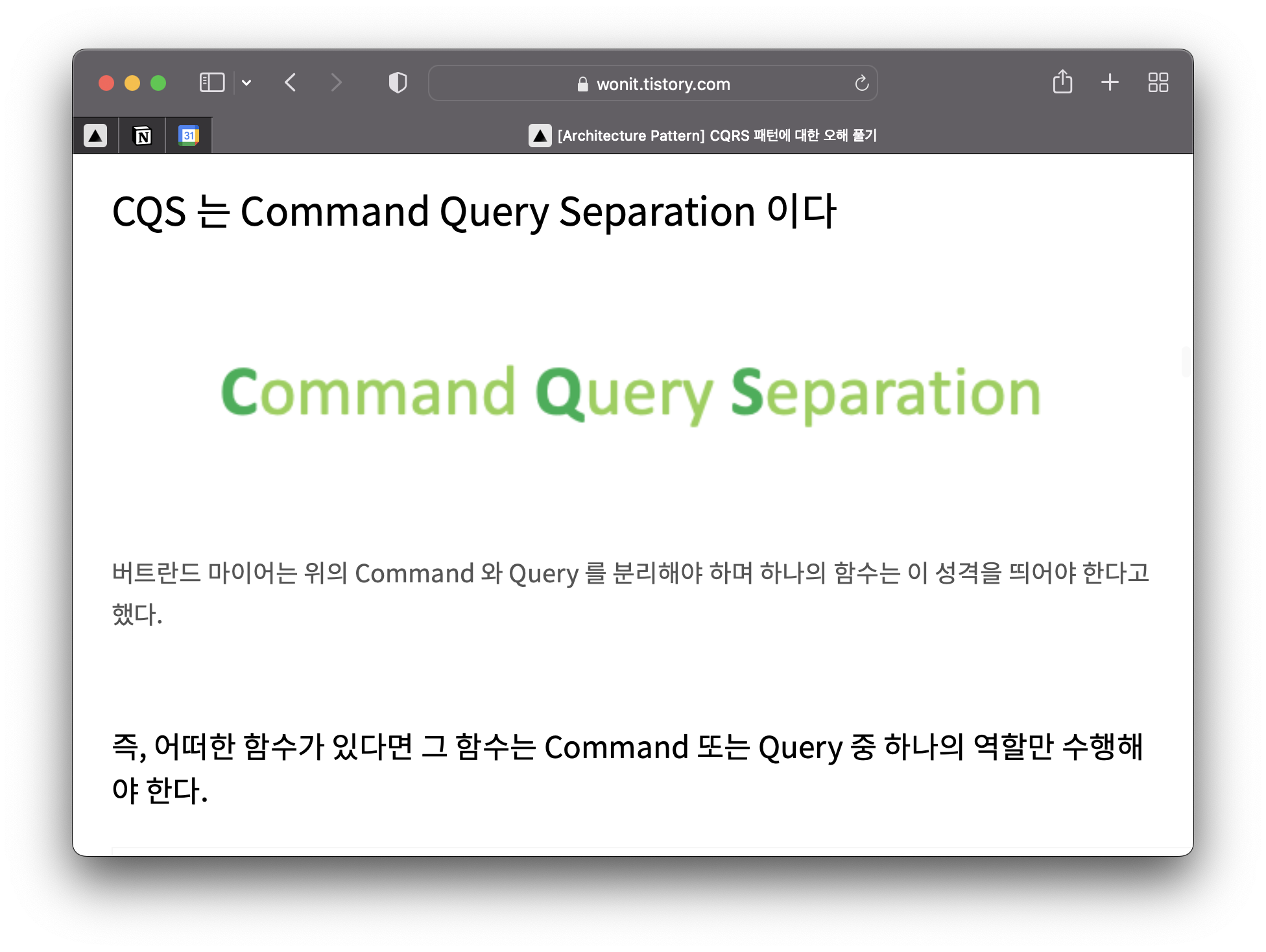 CQRS 패턴에 대한 오해 풀기 라는 글에서 CQS 에 대해서 잠깐 언급한다.