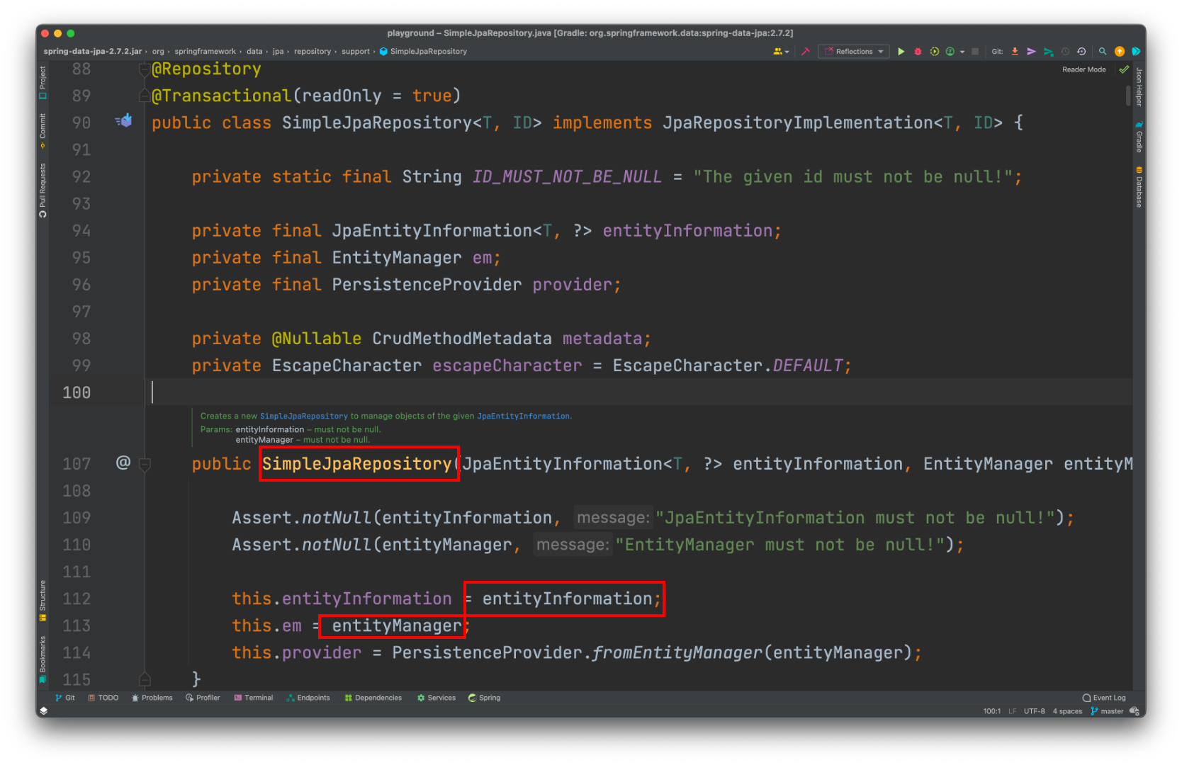 μ κ·Έλ¦Όμ Jpa λ₯Ό μ¬μ©ν λ κΈ°λ³ΈμΌλ‘ μ¬μ©λλ Repository μ ꡬνμ²΄μΈ (μ ννλ JpaRepository μ ꡬν체) SimpleJpaRepository ν΄λμ€μ΄λ€.