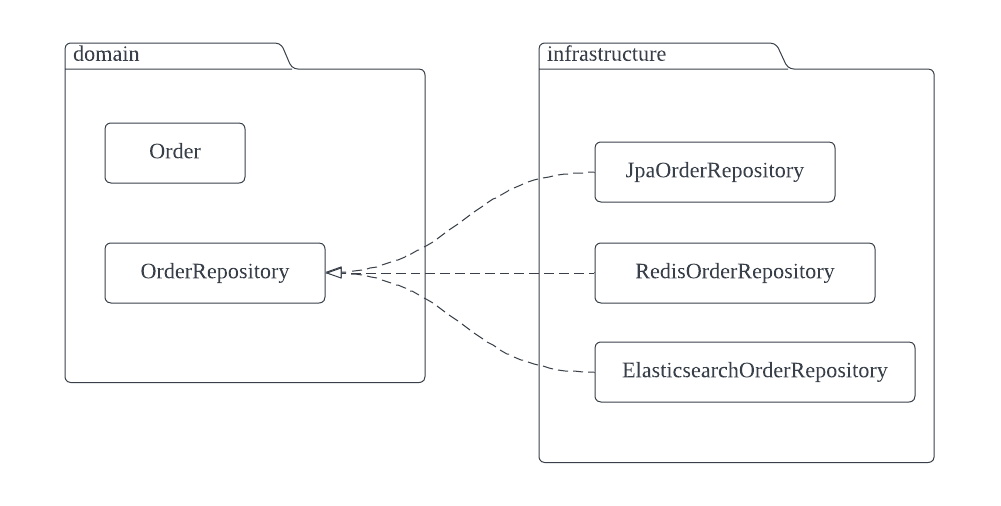 domain κ΄μ μμ 보면 repository λ€μ μ΄λ€ μ₯μΉκ° μ¨μ΄μλ μκ΄ μμ΄ λ°μ΄ν°λ₯Ό μ‘°μνλ λ°μ νμν μΈν°νμ΄μ€λ§μ λ°λΌλ³΄κ³ νλ ₯νκΈ° λλ¬Έμ RDBMS μ΄λ, WebServer μ΄λ, FileSystem μ΄λ μκ΄ μλ€.