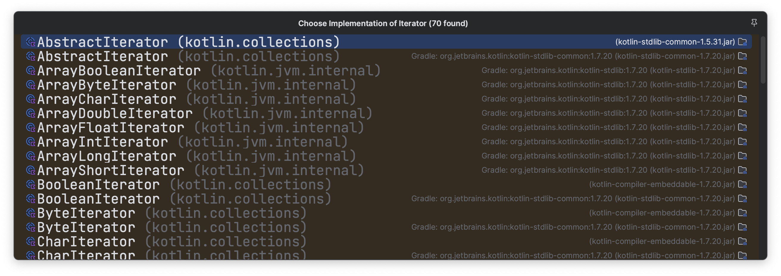 위의 내용에 대해서는 구현 코드가 어떻게 되었든 java/kotlin 을 이용해서 개발을 하는 개발자라면 Iterator 에 대해서 잘 알고 있을 것이다.