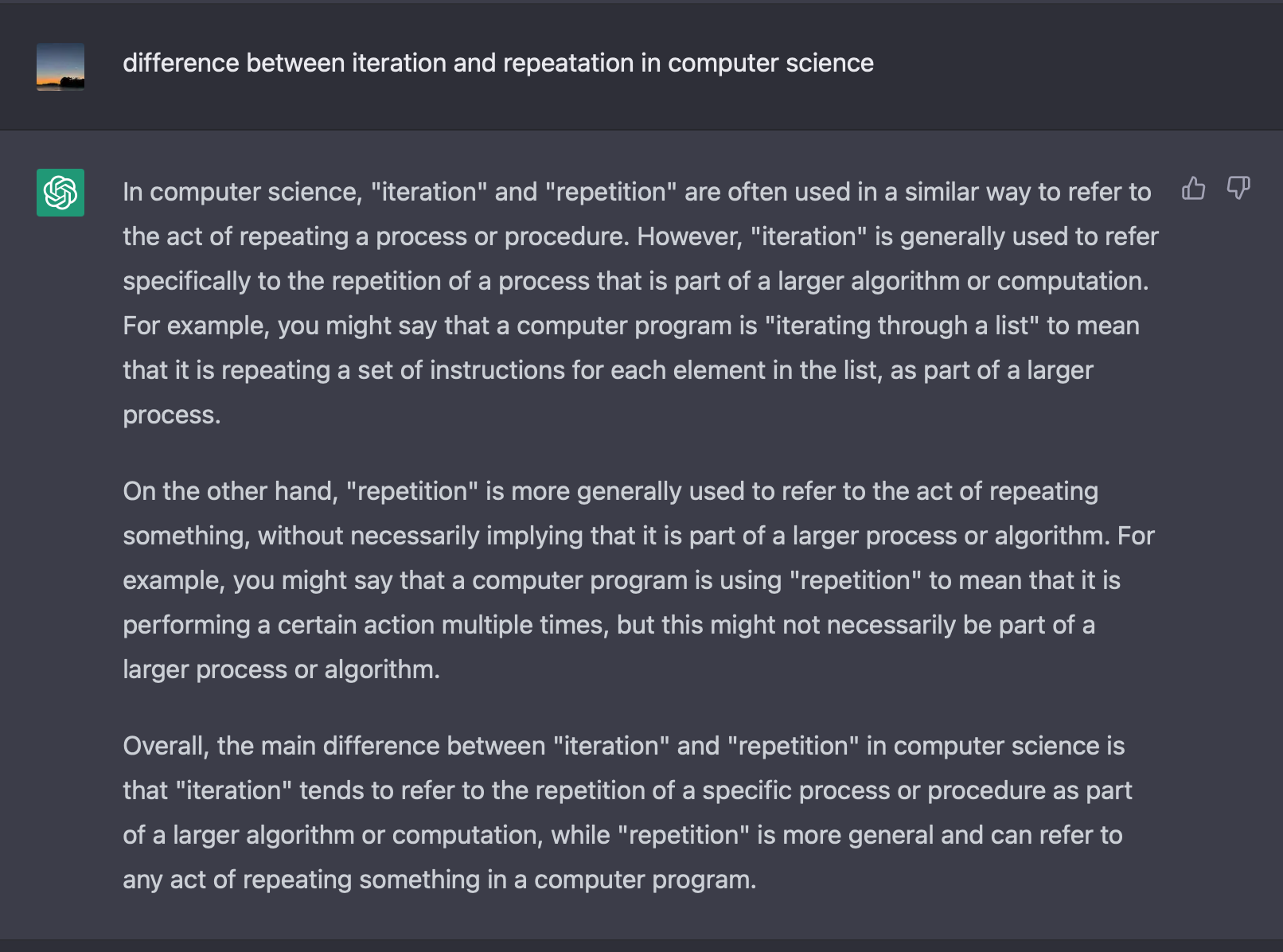 이렇게 repeat 과 iterate 의 단어적 차이에 대해서 알아보았다. 이제 다음과 같이 repeat 과 iterate 의 차이에 대해서 정의할 수 있다.