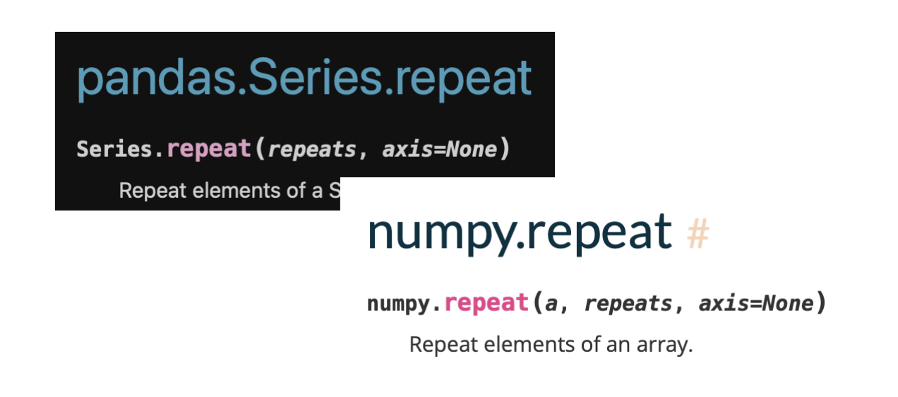 나는 잘 모르는 분야이긴 하지만 numpy 나 pandas 와 같이 데이터 처리가 매우 중요한 분야는 repeat 이라는 용어가 자주 보인다.