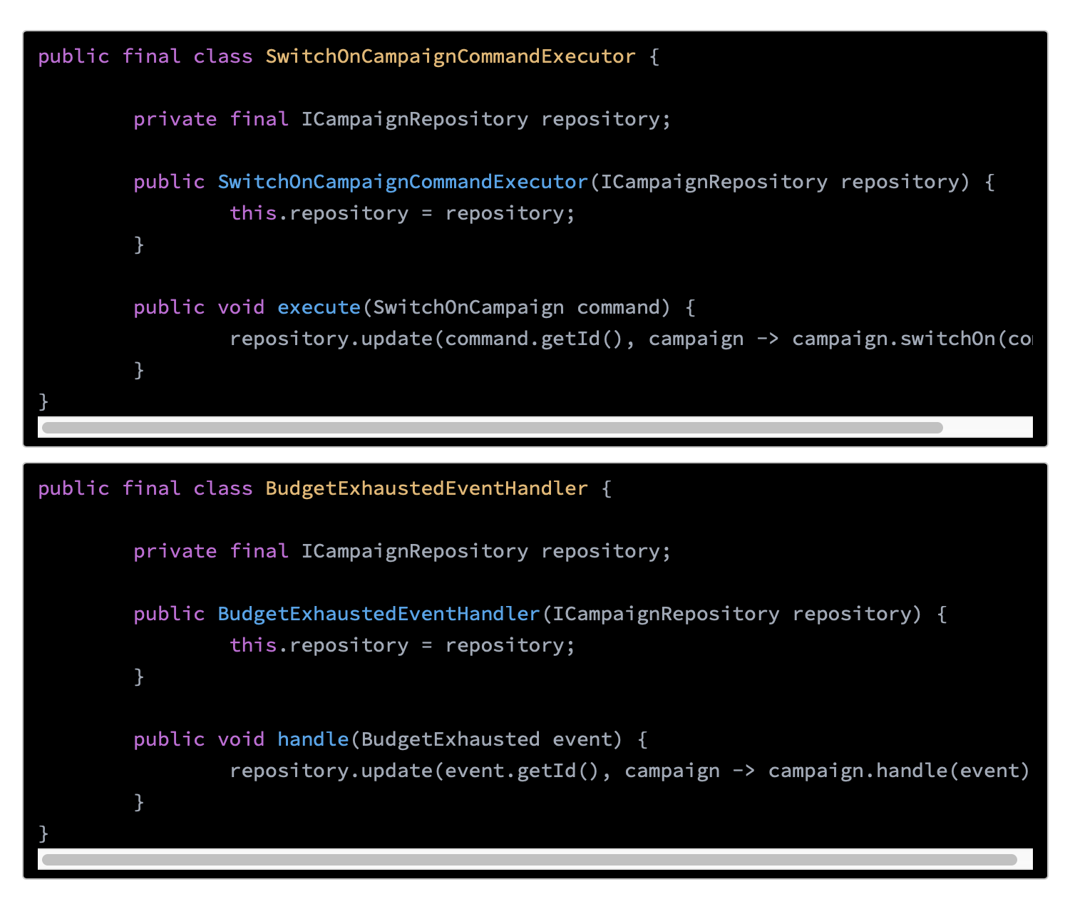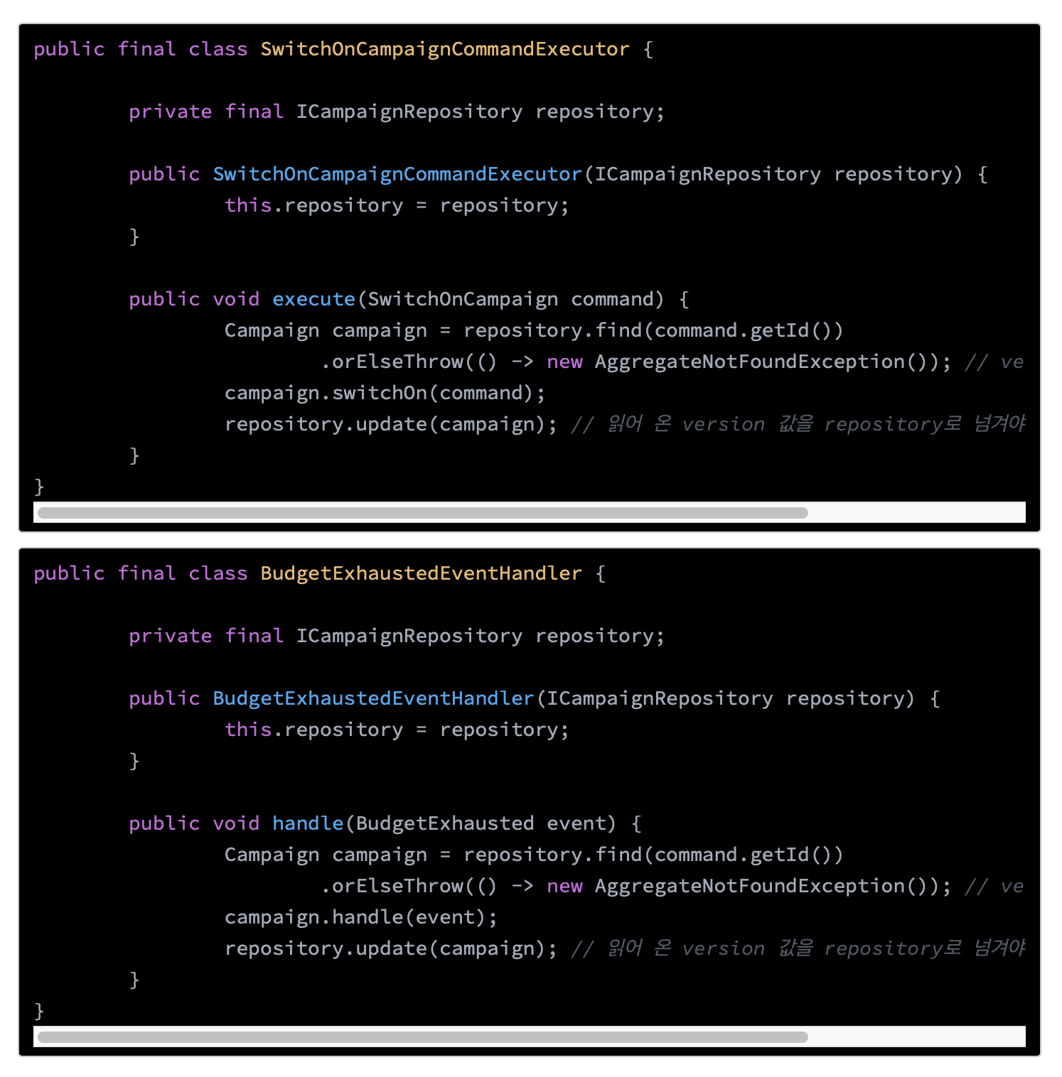 ์ด๋ ๊ฒ ๋๋ค๋ฉด EventHandler ์ ๋๋ฉ์ธ ๋ก์ง์ด repository ๋ก ๋ฐ์ด์ ธ๋ฒ๋ฆฌ๊ฒ๋๋ค.