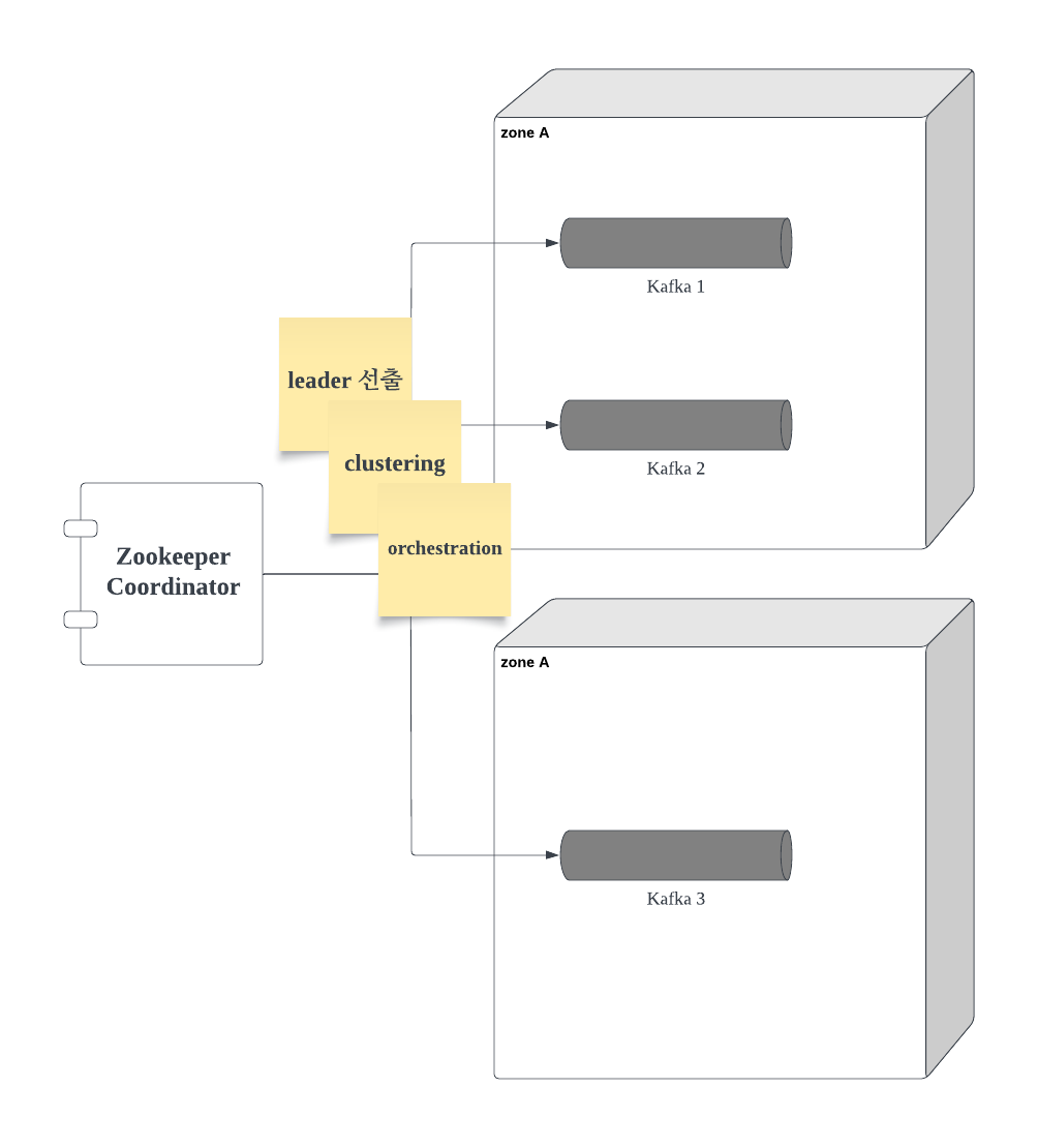 μΉ΄νμΉ΄λ μΌλ°μ μΌλ‘ zookeeper λΌλ λΆμ° μ½λλ€μ΄ν°μ ν¨κ» λμνλ€.