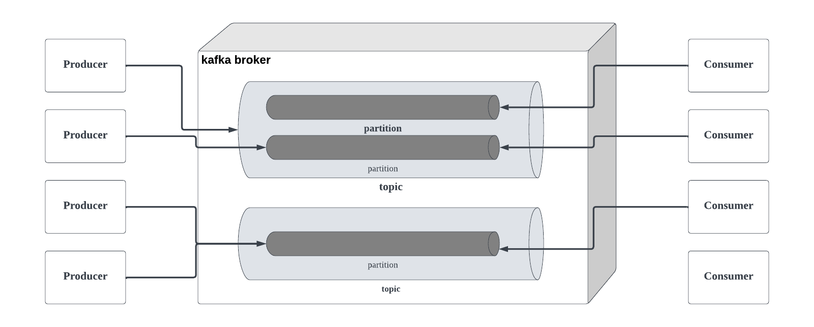 νλ‘λμλ μνλ€λ©΄ νΉμ topic λ΄μ partition μλ λ©μμ§λ₯Ό λ°νν μ μλ€