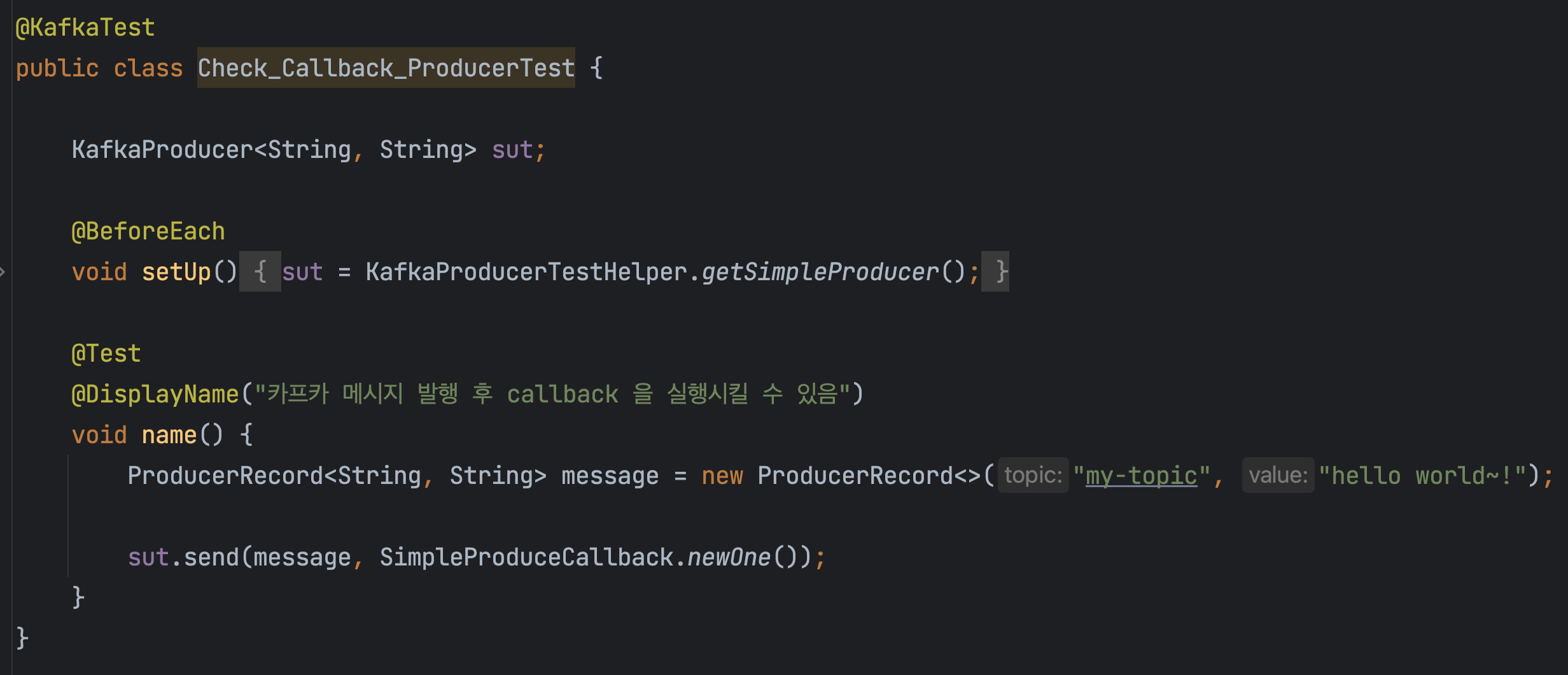 μ΄λ² ν μ€νΈμμλ kafka producer κ° μ 곡νλ callback μ΄λΌλ κΈ°λ₯μ λν΄μ μμ보μ.
