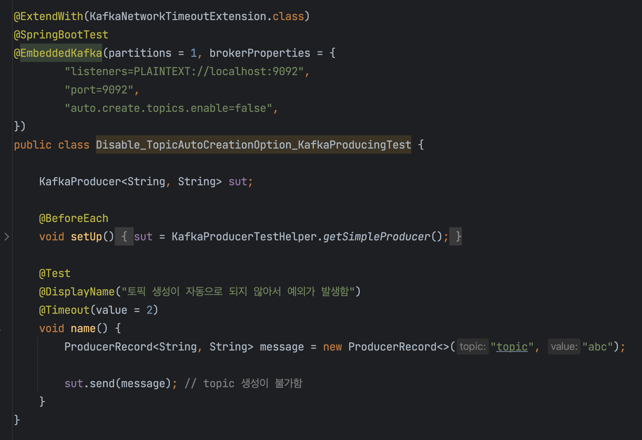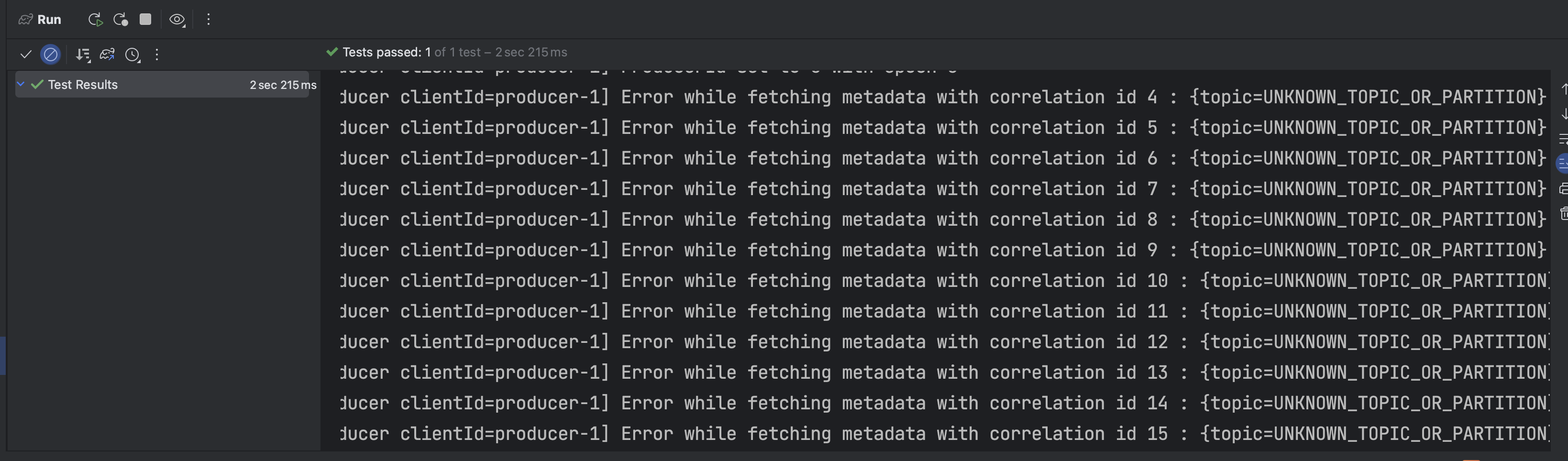 test 2. KafkaProducer μ‘΄μ¬νμ§ μλ topic μ λν΄μ λ©μμ§ λ°ν ν μ€νΈ