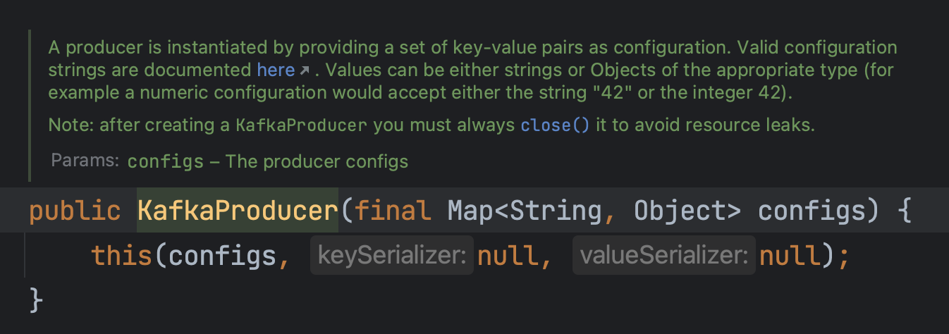 ν΄λΉ configuration μ μμΈν μ¬νκ³Ό νΉμ μ€μ λ€μ confluent.io/kafka config μμ νμΈν μ μλ€