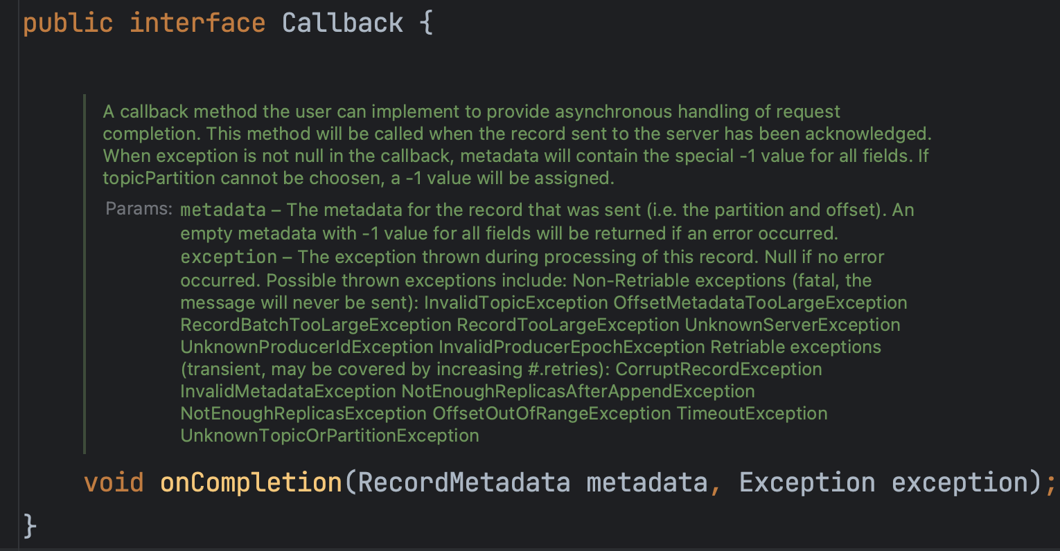 callback μ org.apache.kafka.clients.producer.Callback μΈν°νμ΄μ€λ₯Ό implements ν΄μΌνλ€