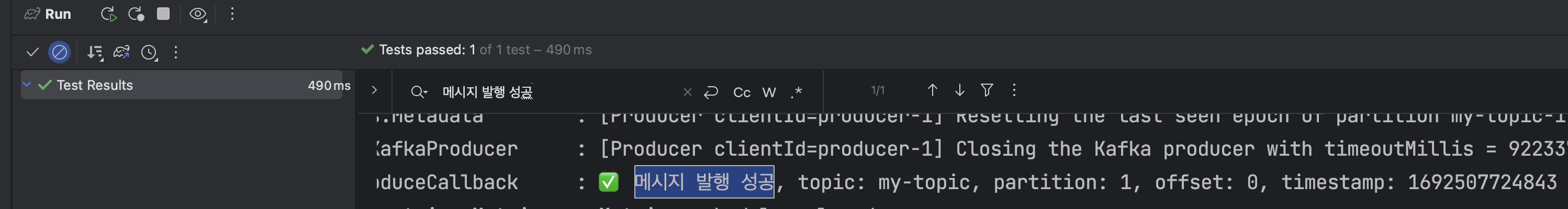 test 1 - KafkaProducer λ₯Ό μ΄μ©ν λ©μμ§ λ°ν ν μ€νΈ