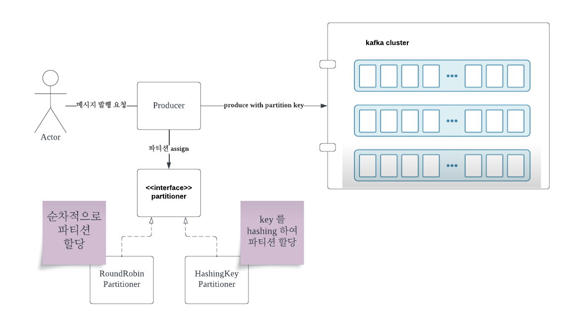μ κ·Έλ¦Όμ 보면 μ μ μλ― μΉ΄νμΉ΄λ λ΄λΆμ μΌλ‘ Partitiner κ° μ΄λ²€νΈ λ‘κ·Έ(λ©μμ§)λ€μ μ΄λ€ νν°μ μ ν λΉν μ§ κ²°μ νλ μν μ μννλ€