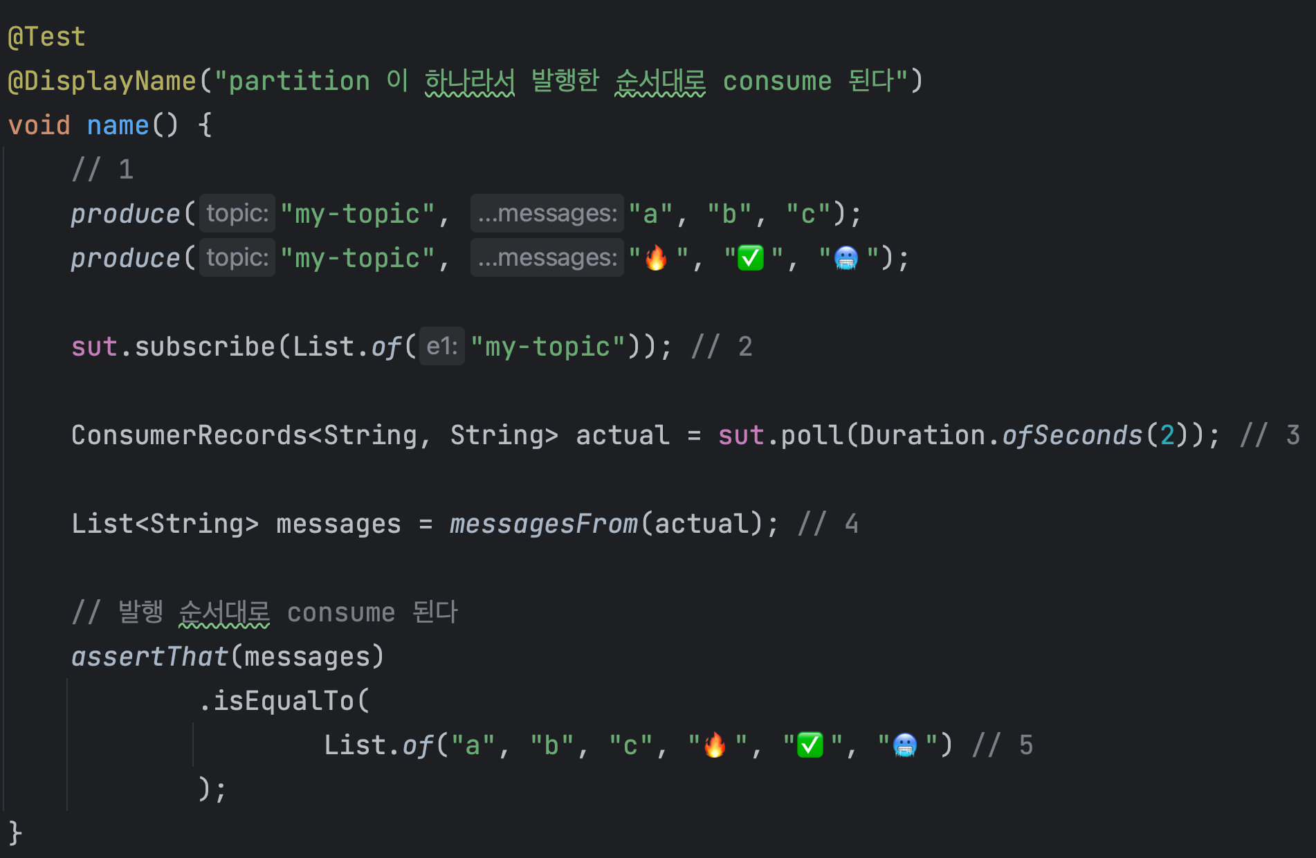 poll()μ°μ°μ ν΅ν΄μ λ©μμ§λ₯Ό μλΉνκ³ ν΄λΉ λ©μμ§ μ€νΈλ¦Όμ String 리μ€νΈλ‘ λ³ννλ€