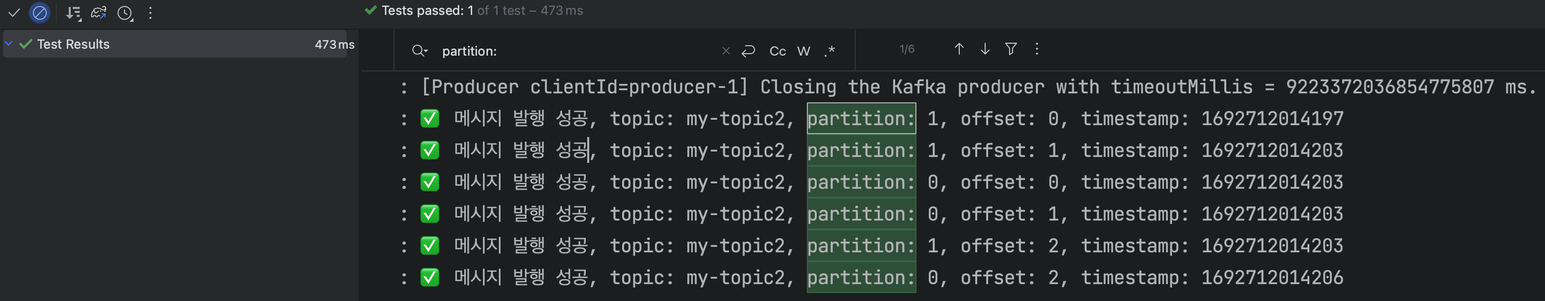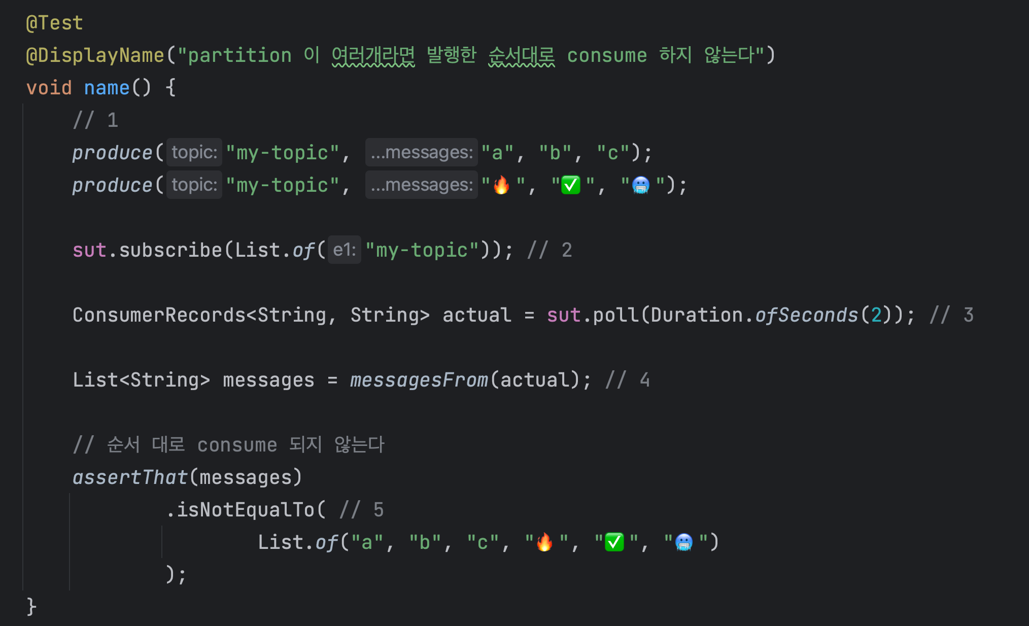 μμ κ²°κ³Όλ₯Ό 보면 μ μ μλ―μ΄, μ€μ ν€λ₯Ό λͺ μνμ§ μμμ§λ§ λ΄λΆμ μΌλ‘ partitioner μ μν΄ Round Robin ννλ‘ ν€κ° ν λΉλμ΄ κ³ λ₯΄κ² νν°μ μ λ€μ΄κ° κ²μ νμΈν μ μλ€