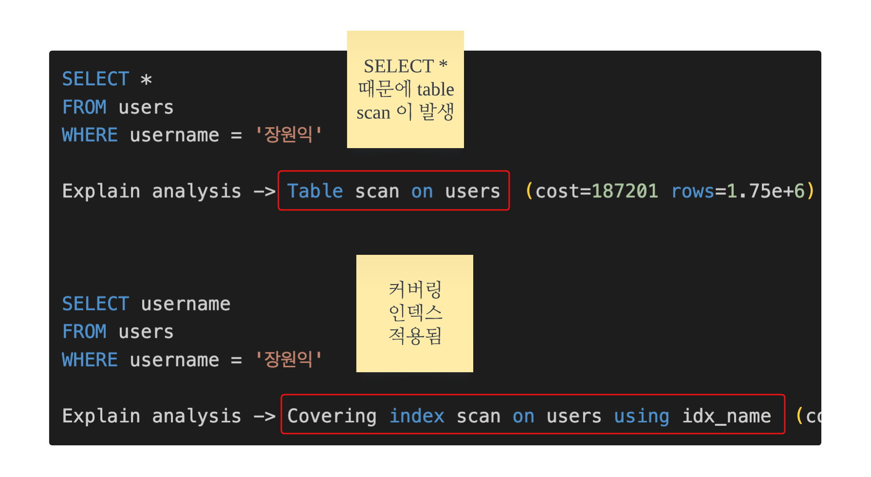 - λΆνμν Disk I/O λ₯Ό μμ κΈ° μν΄ covering index λ₯Ό μ μ©νμλ€