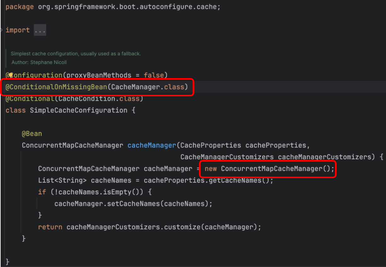 μ΄ ν΄λμ€λ spring-boot-autoconfigure μ μ‘΄μ¬νλ SimpleCacheConfiguration ν΄λμ€μ΄λ€