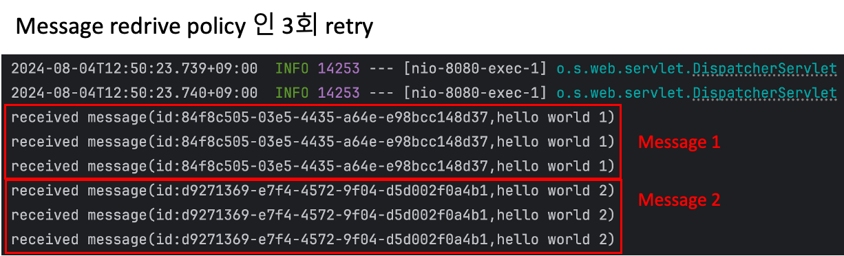 - message ๋ฅผ redrive ํ๋ฉด ์ ๊ท message ๊ฐ ์์ฑ๋จ