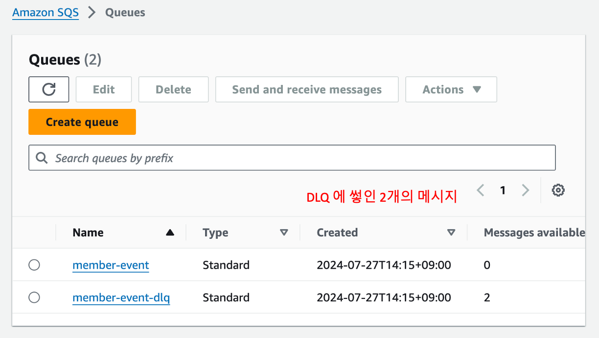 ์์ ์๊ฐ์ ์ฐ๋ฆฌ๋ SQS ๋ฅผ ์์ฑํ๊ณ Spring Boot 3 ๋ก producer/consumer ๋ฅผ ๊ตฌํ ํ์ฌ DLQ ๋ฅผ ์ด์ฉํ์ฌ ์๋ฌ๋ฅผ ์ฒ๋ฆฌ ํ์๋ค.