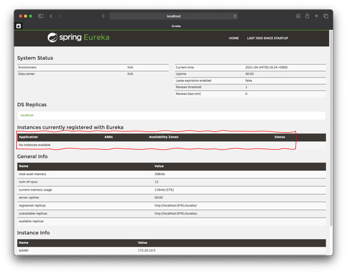 @EnableEurekaServer๋ฑ๋ก - Eureka Dashboard