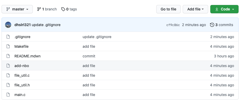μ€μ λ‘ BoB κ³Όμ μΈ add-nbo μμ€ μ½λλ₯Ό github μ μ μ₯νλ κ³Όμ μ 보μ΄λλ‘ νκ² λ€.