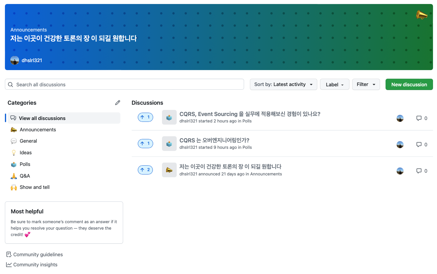 github cqrs journey guide 한글 번역 repository 에 다음과 같은 discussion 을 만들었고, 여기서 더 많은 성공과 실패의 사례를 듣고싶은 마음이다.