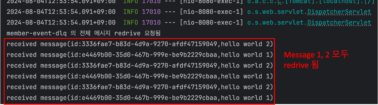 println("$id ์ ํด๋นํ๋ message ์กด์ฌํ์ฌ origin queue ๋ก redrive")